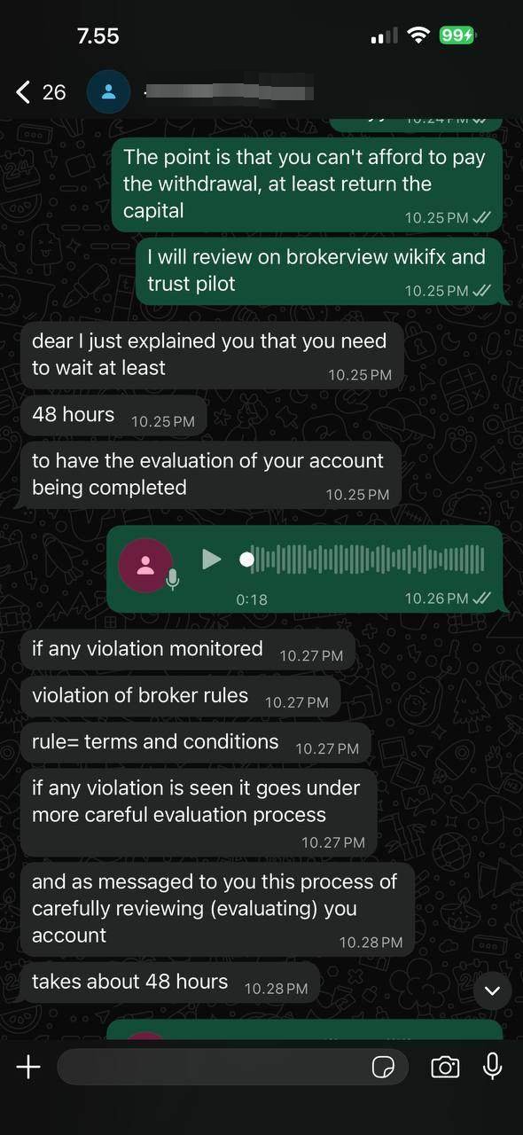 I deposited funds and traded normally with this broker. When I requested a withdrawal, the broker rejected the request and suddenly accused me of using a fake identity and violating trading rules, without providing any evidence or clear explanation. After that, my client cabinet was blocked, and my account balance of USD 1,078 was frozen. The broker insisted that I wait 48 hours for review, however after more than 48 hours, there was no update, no clarification, and no resolution at all. Customer support stopped responding, and my funds have not been returned until now. If there were identity or compliance issues, they should have been verified before allowing deposits and trading, not only after a withdrawal request. I am willing to provide valid identification documents, transaction proof, and full trading history to WikiFX or any independent authority for investigation.