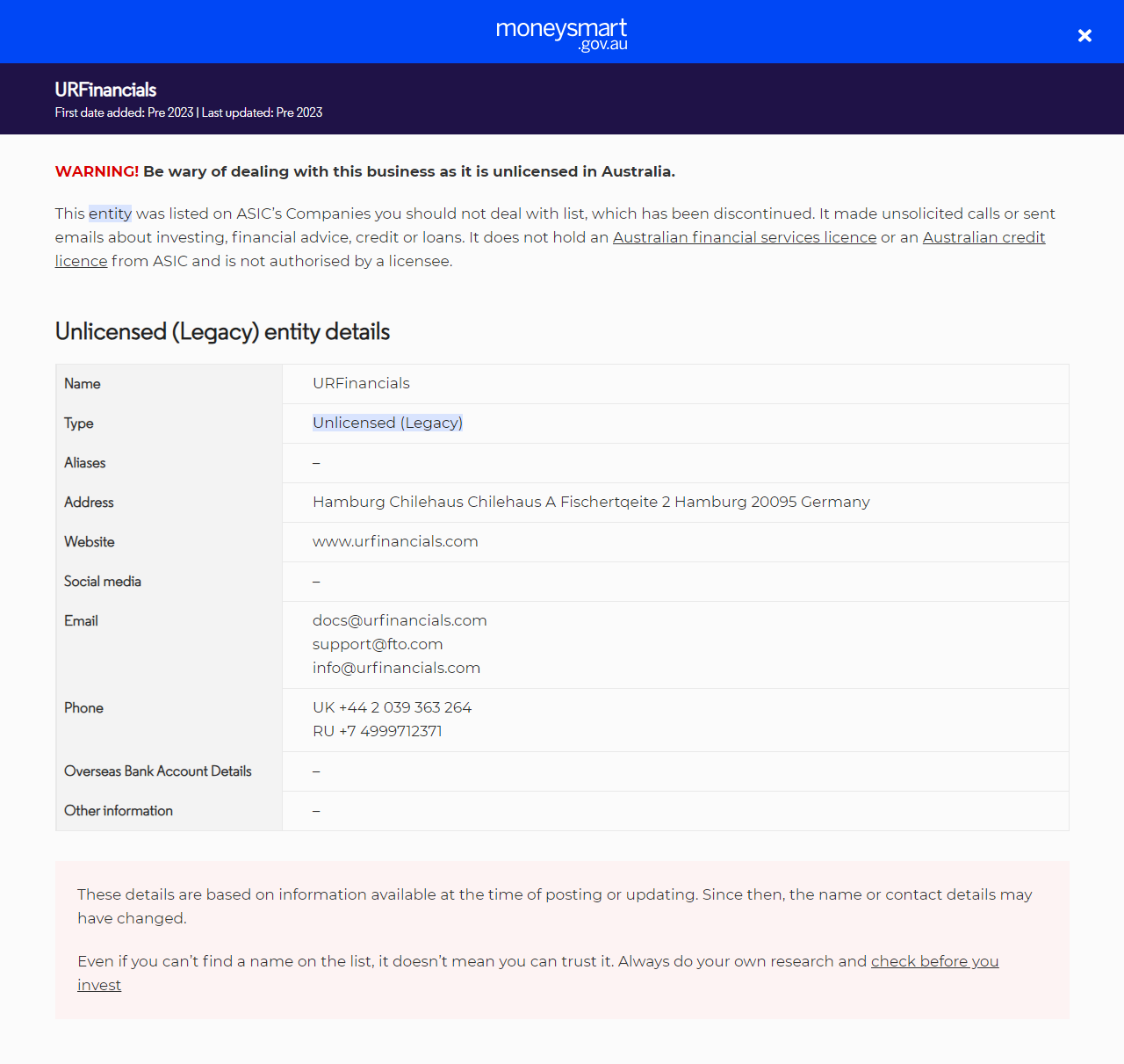 النوعغير مرخص (قديم)كيان غير مرخص. هذا الإدخال منقول من قائمة 'الشركات التي لا يجب التعامل معها'، والتي تم إيقافها في عام 2023.