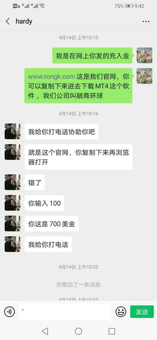融商环球平台客服诱导我投资开户入金,我没有接触过外汇平台,也没做,客服把我安排结带单老师叫我听他的,我不会他教我下单。平台带单老师2020.04.22号给我原油单子做空,见意做空等:我照做了。我做了原油到04.23号早9点半套进去的单子出来了。我问带单老师要不要平掉,因为04.22号老师叫做空,老师不回答我的请求。我也没有平仓,到了04.23晚上大涨,把我的本金全拉爆仓了。我就问老师我问你要不要平仓你为什么不回答?他说平不平仓是我的事。沒良心的带单老师和平台。大家有看到的不要相信他们。