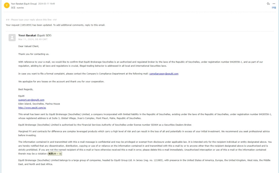Equiti市场人员以低点差,免息等条件诱导我开户入金交易,账户盈利后,平台以违规交易为由扣除账户利润。 与平台交涉,平台态度粗暴,拒绝处理,且申诉邮件被拒收。