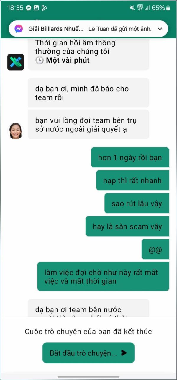 id ví: 1812431 Hiện tại tôi đang giao dịch tại IUX. Nhưng khi tôi yêu cầu rút tiền về tài khoản ngân hàng thì IUX báo xử lý trong 24h nhưng đã qua 24h mà tiền vẫn chưa được chuyền về ngân hàng của tôi. Trong bảng thông báo tin nhắn thì thấy báo đang được xem xét. Tôi liên hệ support nhưng vẫn cứ nhận được yêu cầu chờ đợi. Tôi rất hoang mang và lo sợ mất tiền, không biết phải đợi bao lâu nữa. Thời gian rút tiền 17/12/2024 16h19 và đến hôm nay 19/12/2024 vẫn trong trạng thái xem xét.