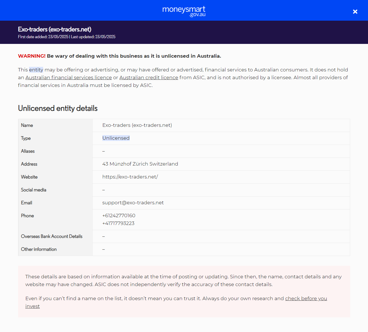 Investor-Warnliste Exo-Trader (exo-traders.net).
