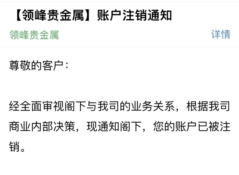 本人在领峰贵金属受到诱导注资多赠金多的诱惑下,平台严重滑点亏损15000多美元,折合人民币10万多人民币,实名给客服部反馈说后台不要暗箱加点了行不行,结果注销了我的账户!这样随意注销账户的平台请大家远离,开始没有盈利之前几乎每天打电话督促多入金有更多优惠活动,出现客户亏损严重就找理由注销账户,这是一茬一茬的在割韭菜!