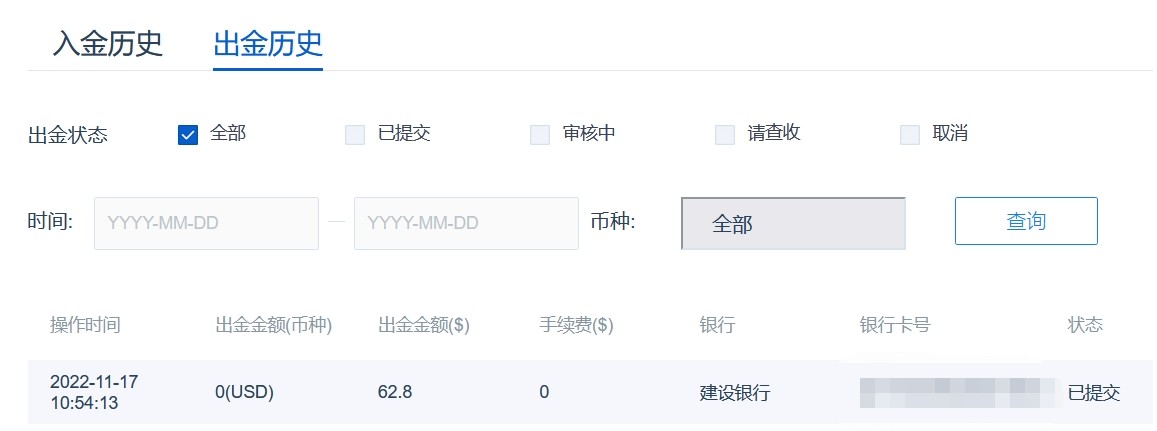 入了100,点差高库存费也高,不想做了提交出金两三天没有动静