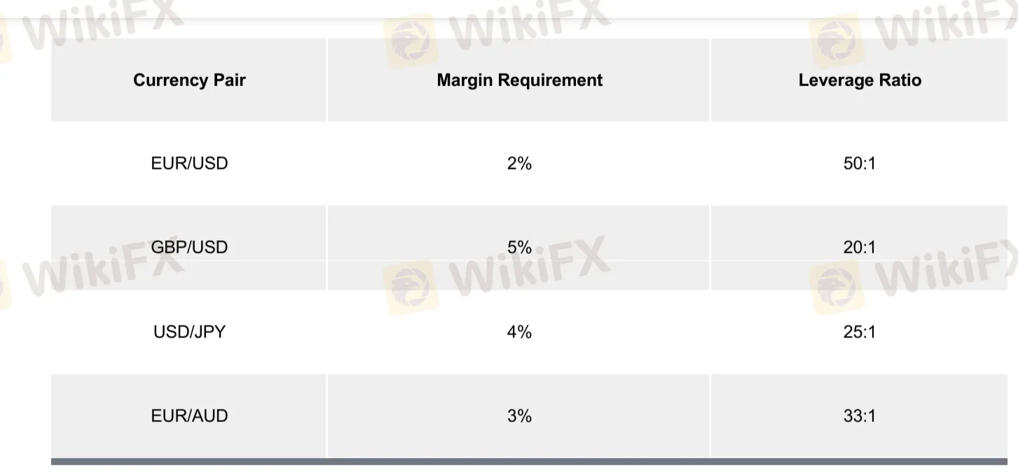 Below are some examples of Leverage Ratios depending on the Margin Requirement