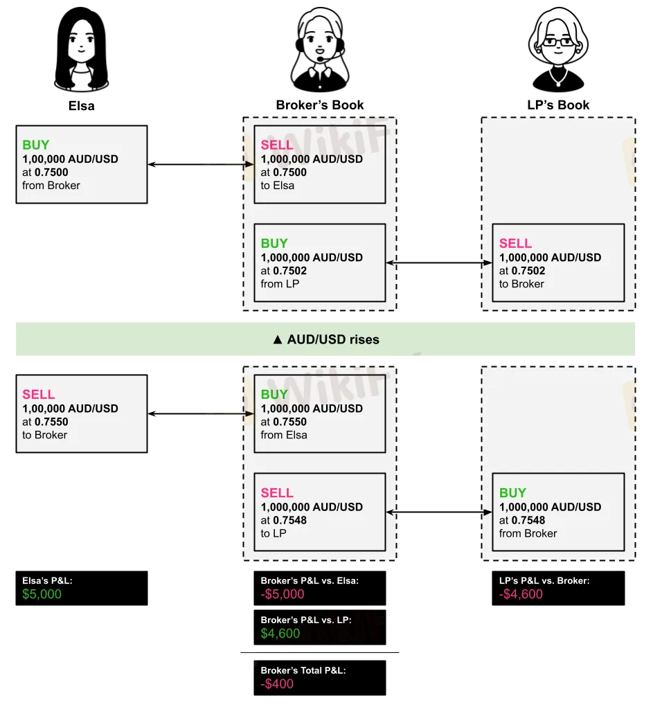 Heres an example that shows what happens when a broker receives worse prices from a liquidity provider compared to prices the broker provides to its customer.