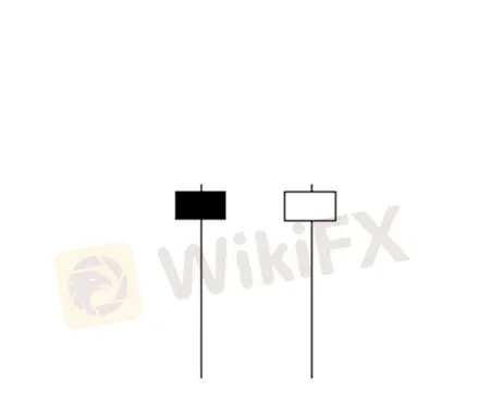 Both candlesticks have small, hollow bodies, extended top shadows, and small or no below shadows.