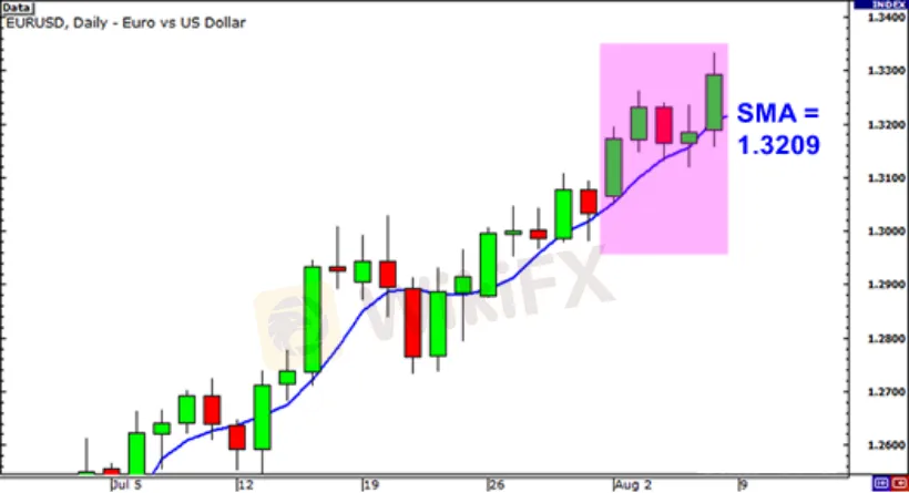Supposed we plot a 5-period SMA on the daily chart of EUR/USD.