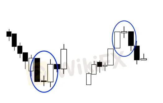 The first candle, which is characterised by a strong bullish candlestick, should be placed at the bottom of a downtrend。