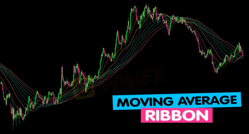 Moving average ribbons are a series of moving averages (MA) of different lengths that are plotted on the same chart to create a ribbon-like indicator. Traders can determine the strength of a trend by looking at the distance between the moving averages, as well as identify key areas of support or resistance by looking at the price in relation to the ribbon.