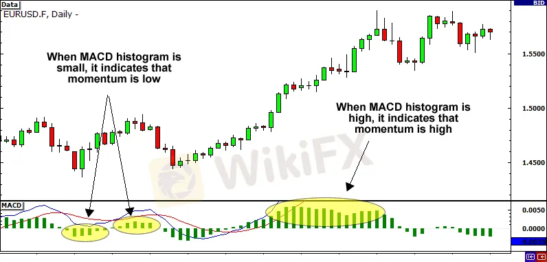 When the histogram grows larger, it indicates that momentum is increasing.