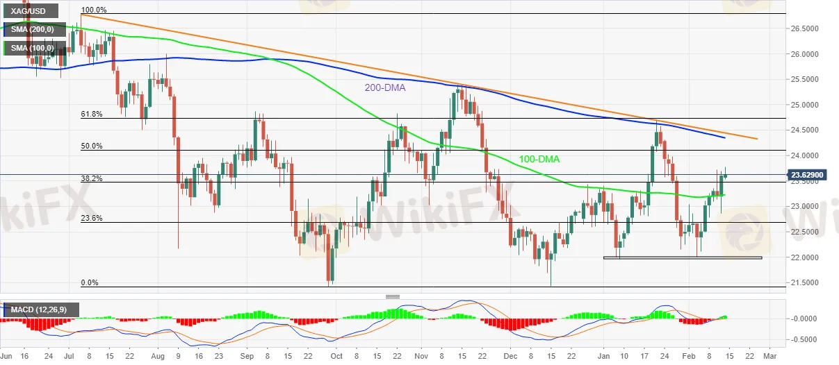 Alternatively, XAG/USD upside eyes $24.00 threshold as the immediate resistance ahead of confronting the 50% Fibo. near $24.10.