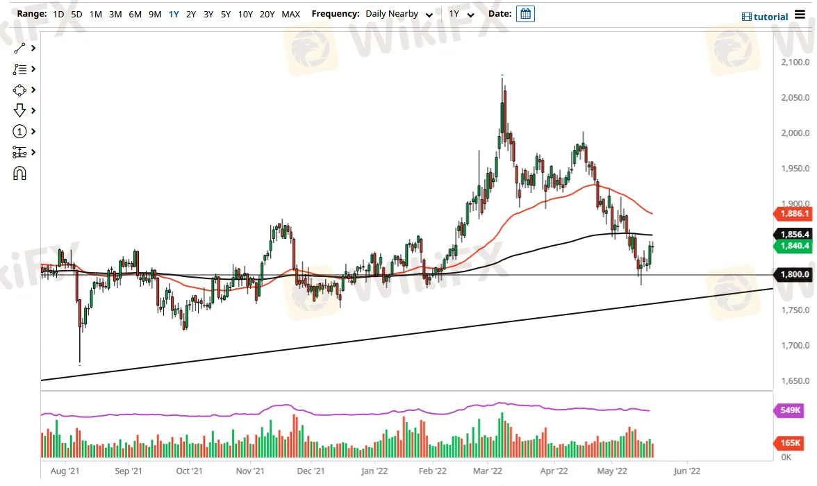 Abstract:Gold markets went back and forth on Friday as we continue to see a lot of noise in the markets. The 200-day EMA is sitting at the $1856 level, offering a bit of resistance. At this point, if we see any hint of selling pressure, then it is likely that we could go back down to the lows again. That being said, the $1800 level is like a major floor in the market, and an area where we would see a lot of interest.