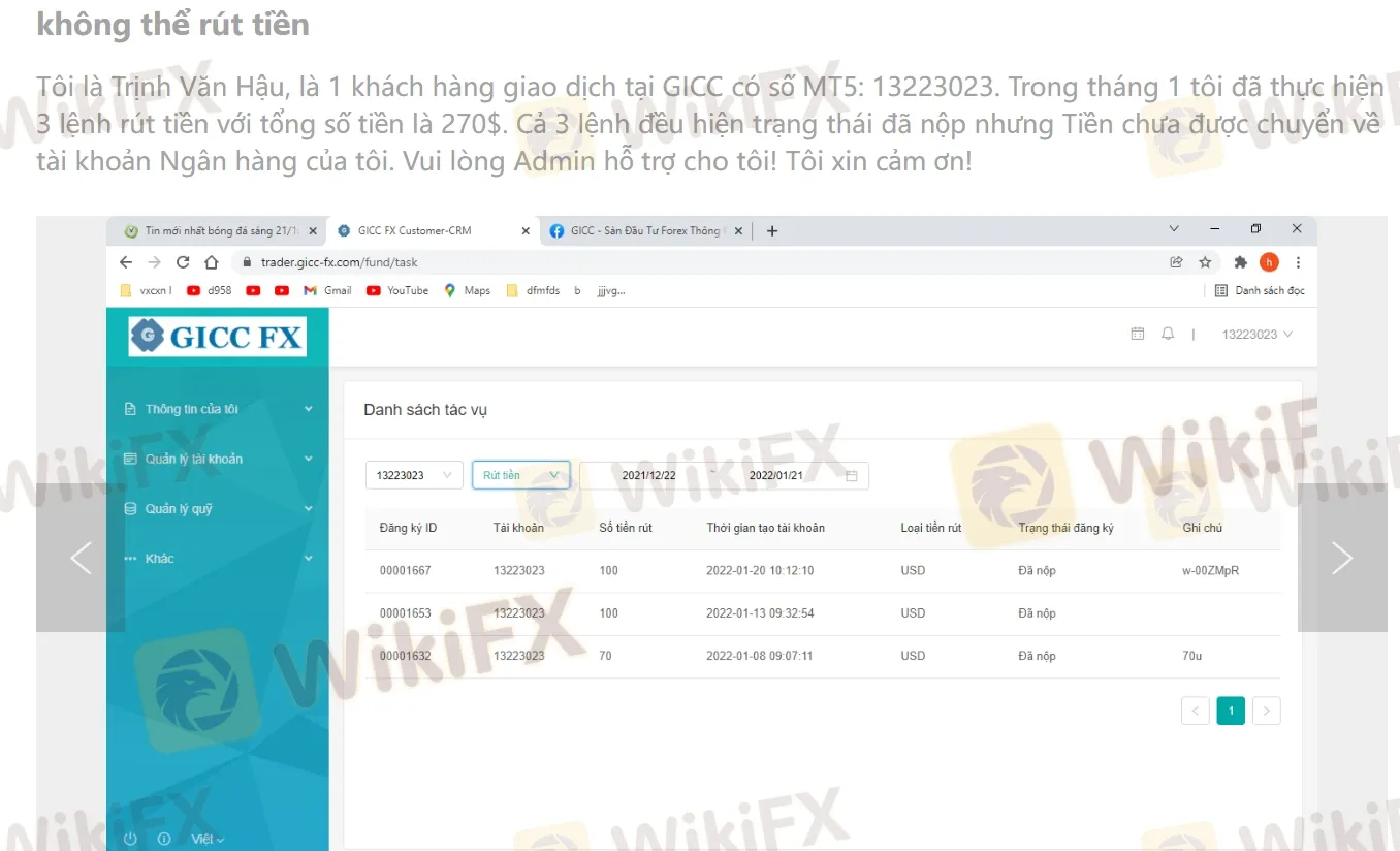Just few days ago, WikiFX received another exposure from an investor in Vietnam, who said that the trader could not withdraw money from his account. Here is a screenshot of his remarks.