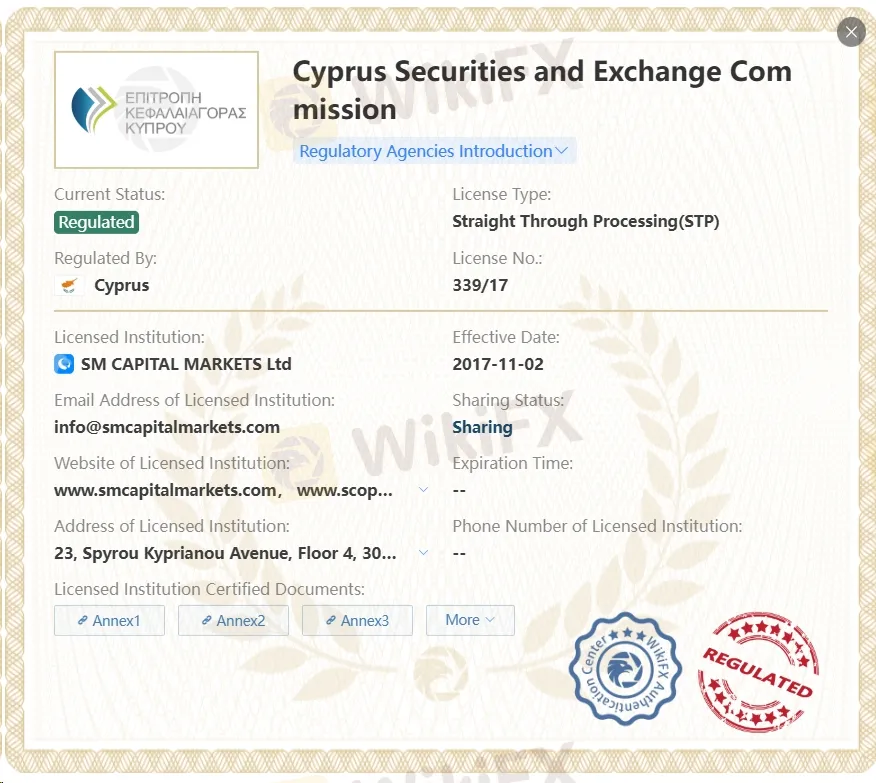 Scope Markets is a regulated financial institution under the Cyprus Securities and Exchange Commission. It operates under the license number 339/17. Scope Markets is a brand name used by RS Global Ltd, a company authorized and regulated by the Financial Services Commission of Belize (“FSC”) under the Securities Industry Act 2021 with registration number 000274/2.