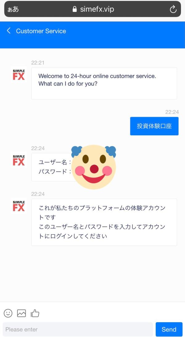simple FXは2つ存在している 一つ目はロマンス詐欺からの紹介 https://www.simpfxp.com 画像はこのロマンス詐欺から紹介されたサイトの画面である。 二つ目はweb検索すると出てくるsimple FX https://simplefx.com URLを比較すると以下2点の差がある ・wwwが存在すること ・末尾にアルファベットが付いていること 一つ目のロマンス詐欺が使用するsimple FXの特徴は以下2点 ・文字が読めない 最初は英語版で表示される その後日本語に変更できるが、完全に変換しきれてなく、文字の適当な羅列になっている ・投資で取引する際、通常は売買の取引が必須だが、買うしかない 赤ボタンの『もっと買う』 緑ボタンの『短く買う』の2択のみ