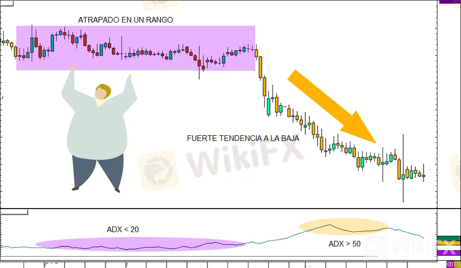 Cuando el ADX es bajo, destaca los períodos en los que el precio suele oscilar o cotizar en un rango.