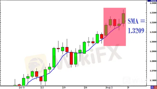 Digamos que trazamos una SMA de 5 períodos en el gráfico diario de EUR / USD.