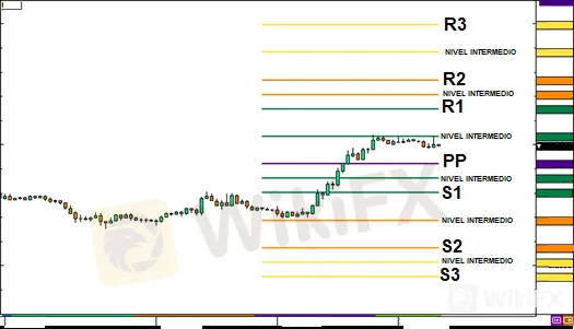 Luego, los niveles de soporte y resistencia se calculan a partir del punto de pivote de la siguiente manera: