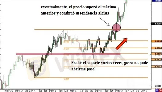 Volvamos a ese ejemplo con el gráfico USD / CHF que le mostramos en la lección anterior.