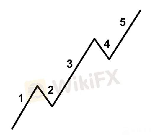 En este patrón, las ondas 1, 3 y 5 son motivo, lo que significa que siguen la tendencia general, mientras que las ondas 2 y 4 son correctivas.