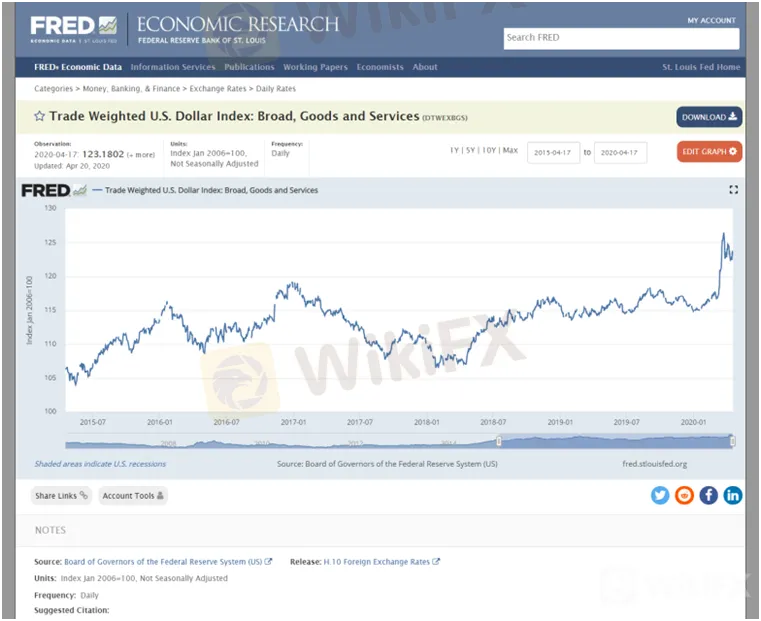 El índice del dólar estadounidense ponderado por comercio, también conocido como índice amplio, es una medida del valor del dólar estadounidense en relación con otras monedas extranjeras.Es un índice ponderado por el comercio que intenta mejorar el índice del dólar estadounidense ICE (USDX) más antiguo Y de propiedad privada mediante el uso de más monedas y la actualización de las ponderaciones anualmente.La Reserva Federal quería crear un índice que pudiera reflejar con mayor precisión el valor del dólar frente a las monedas extranjeras en función de la competitividad de los productos estadounidenses en comparación con los productos de otros países.Se formó en 1998 para mantenerse al día con el comercio de EE. UU.