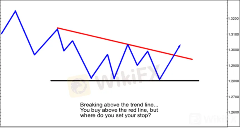Si el mercado se mueve hacia estas áreas, significa que la línea de tendencia no es compatible con los compradores y los vendedores ahora tienen el control.