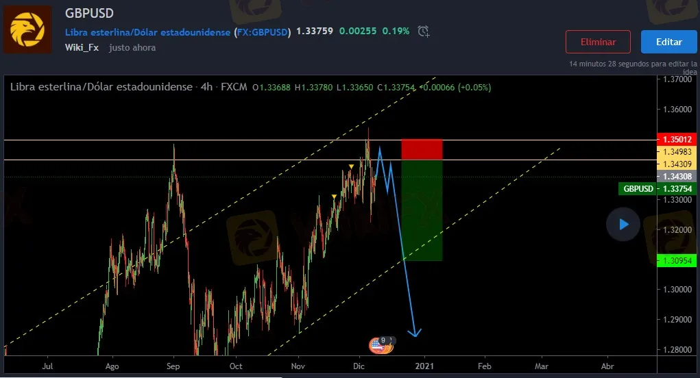 Excelente oportunidad si se dan las confirmaciones para vender sin parar entre los puntos 1.34983 - 1.35012 con un Profit hasta 1.30954 tener en cuenta ese punto por que podemos esperar rompimiento de linea de tendencia esperar retroceso y seguir vendiendo . pero para ser precavidos esperamos hasta el punto marcado , considere siempre su gestión de riesgo esta es una buena oportunidad para operar .