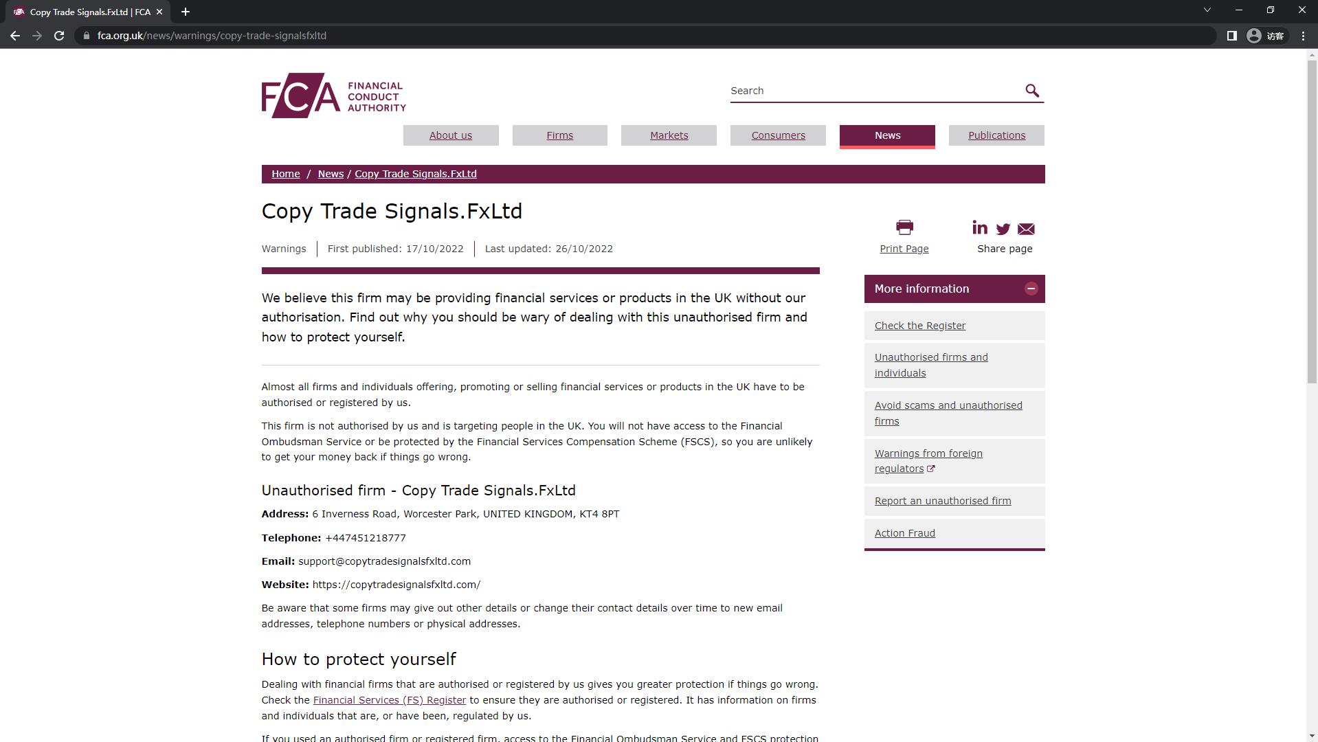 Lista de Advertencia de la FCA de empresas no autorizadas Copiar Señales de Operaciones FxLtd.