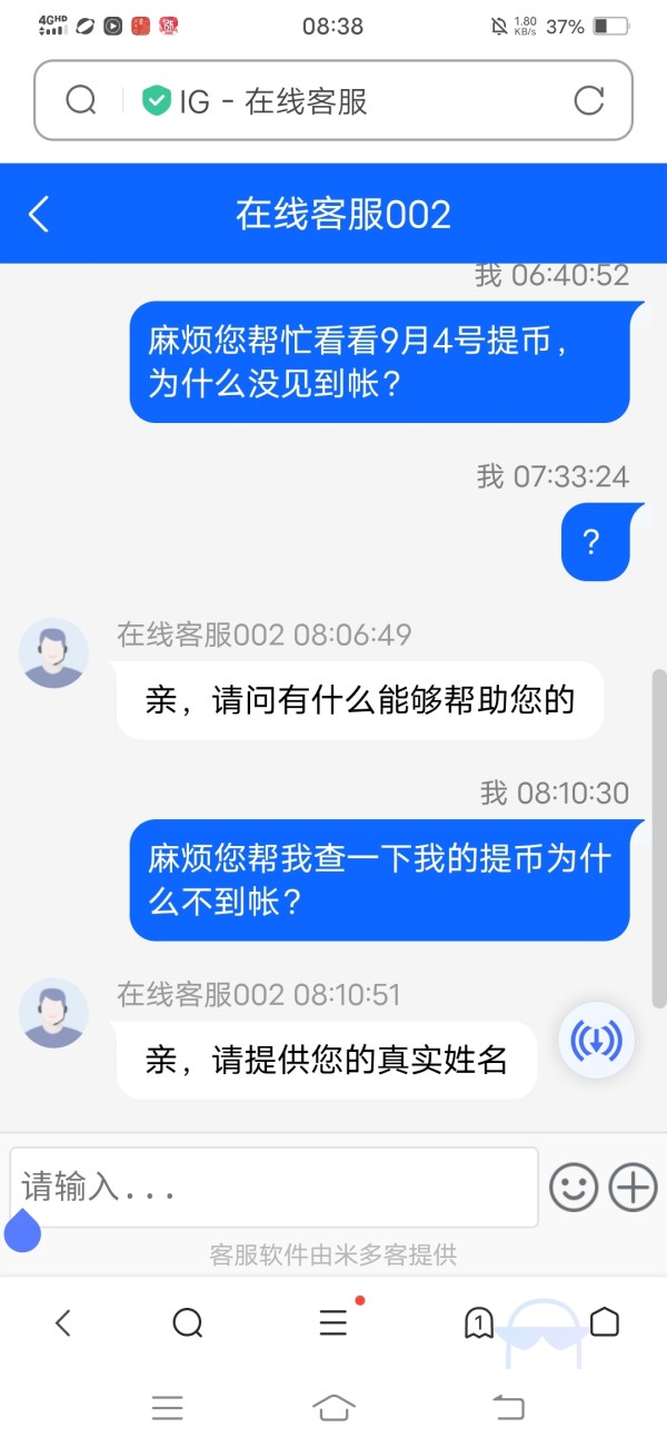 9月4号出金一直没有到帐,超过36时间了联系客服也未见解决问题。