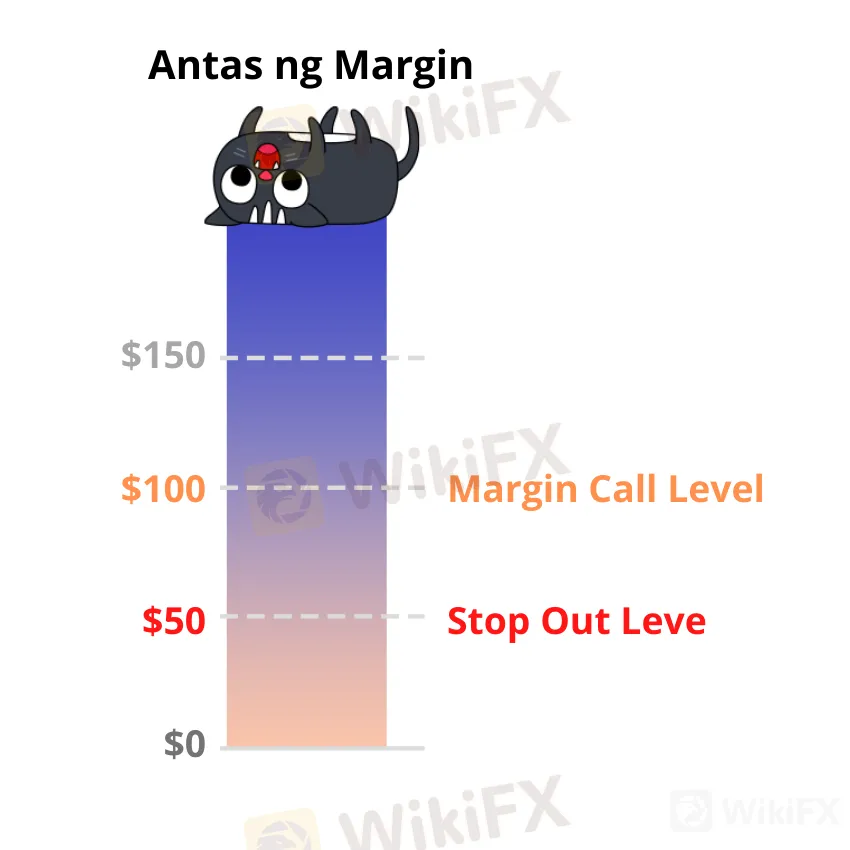 Tinutukoy ng broker ang Margin Call Level sa 100% at ang Stop Out Level sa 50%.