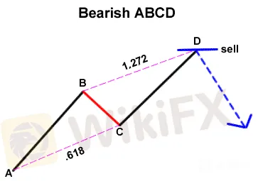Kung gagamitin mo ang Fibonacci retracement tool sa leg AB, ang retracement BC ay dapat umabot sa 0.618 na antas. Susunod, ang line CD ay dapat na ang 1.272 Fibonacci extension ng BC.