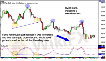 Ang isa pang paraan ay ang paggamit ng momentum tricks sa pamamagitan ng pagbabantay para sa isang aktwal na crossover o paghihintay para sa oscillator na umalis sa overbought/oversold na rehiyon.