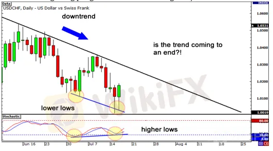Habang ang presyo ay nagrehistro ng mas mababang mababang, ang Stochastic (aming indicator ng pagpipilian) ay nagpapakita ng mas mataas na mababang.