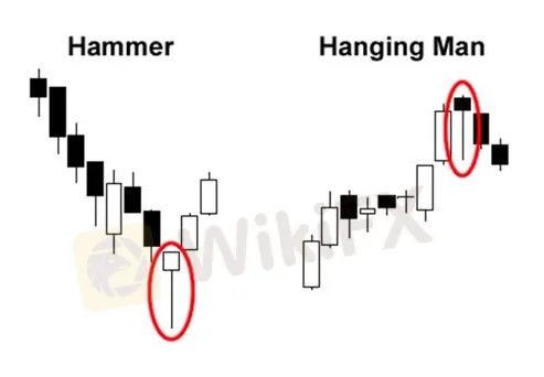 Ang Hammer at Hanging Man ay eksaktong magkamukha ngunit may ganap na magkakaibang kahulugan depende sa nakaraang pagkilos ng presyo.