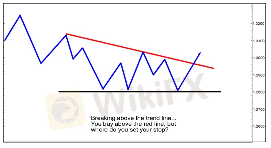 Sa kasong ito, ito ang pinaka-makatuwirang itakda ang iyong mga paghinto sa ibaba ng mga linya ng trend at mga lugar ng suporta.