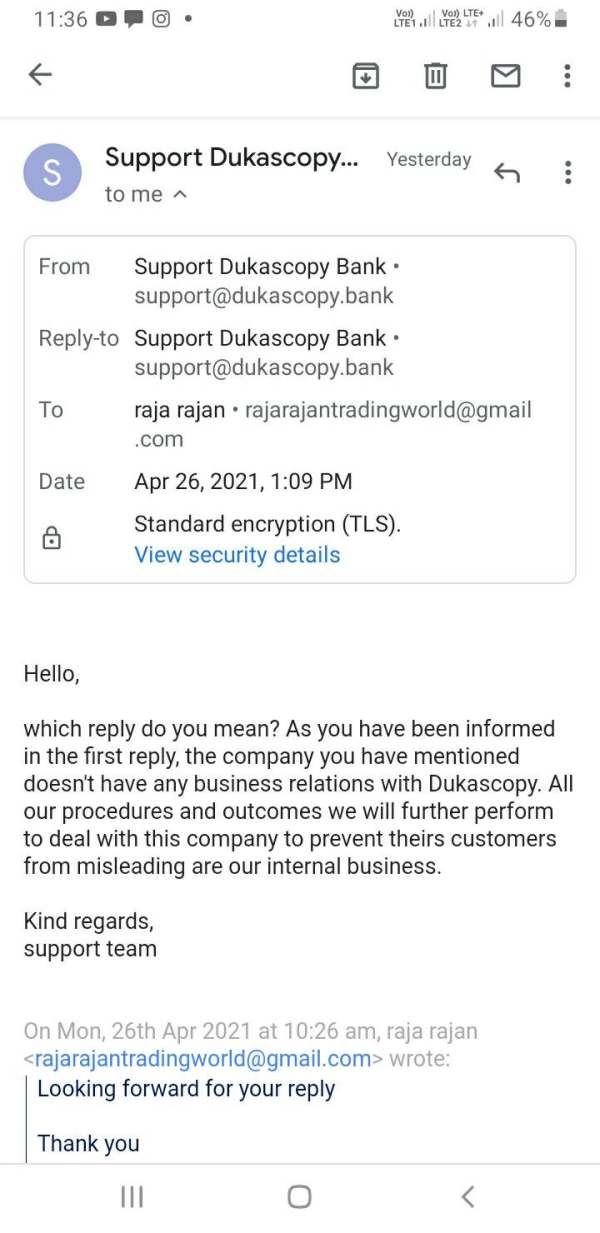 As I have visited alphaforexmarkets.com and asked about their liquidity provider in their live chat, a support agent named Merlin attend me and he/she gave details like " Nomura, Saxo, Dukascopy, JP Morgan Chase" as their liquidity provider , so I have asked to Dukascopy banks in their support mail and they have mentioned that they have no business relationship with this firm , so this means they give false details about their liquidity provislders , aslo i have attached some screenshot aboutit