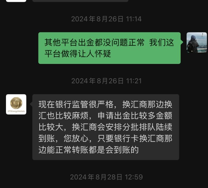 恶意不给出金 客服联系不上 g t se公司各种理由拒绝出金