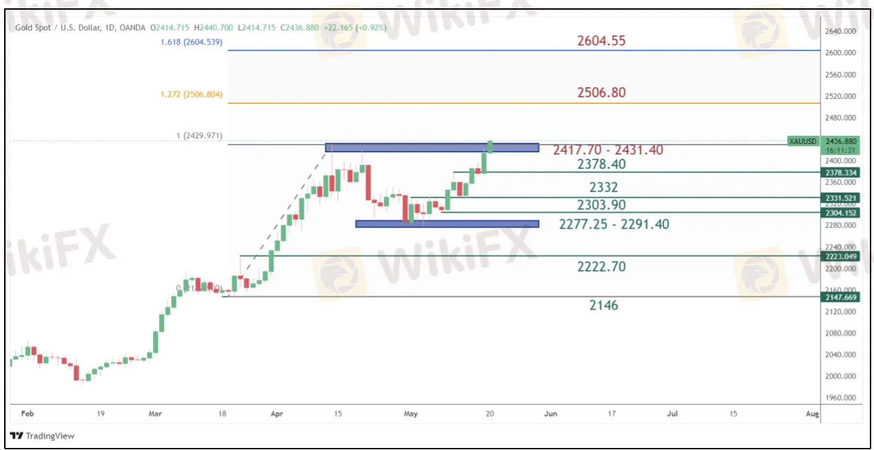 संभावित स्तिथि: यदि कीमत दैनिक समय सीमा पर $2417.70 और $2431.40 के मूल्य स्तरों के बीच प्रतिरोध क्षेत्र से ऊपर बंद होती है, तो सोने के अपना सकारात्मक प्रदर्शन को जारी रखने की उम्मीद है। हम $2506.80 और फिर $2604.55 पर रेजिस्टेंस लेवल को टारगेट करने के लिए खरीदारी की स्थिति बनाने की सलाह देते हैं।