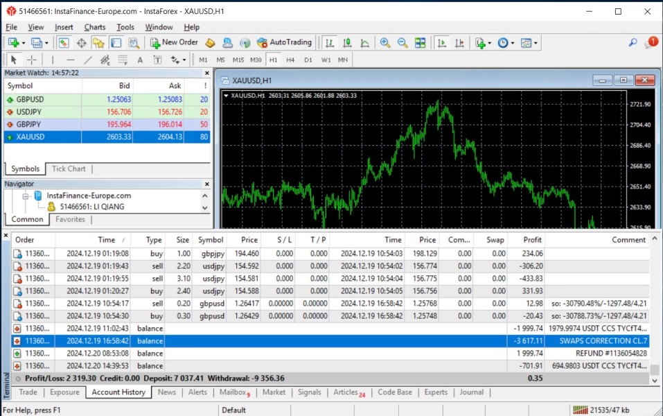 instaforex Deduct my $3617 funds