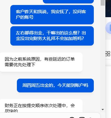2005.7.11日周五出金,到今天16号,多次和客服沟通未到账的事宜,回复和财务沟通了,尽快尽快处理,尽快就是这样处理的?做外汇也10多年了,试问有这么慢的出金平台吗?是不是平台出问题了?让人质疑!
