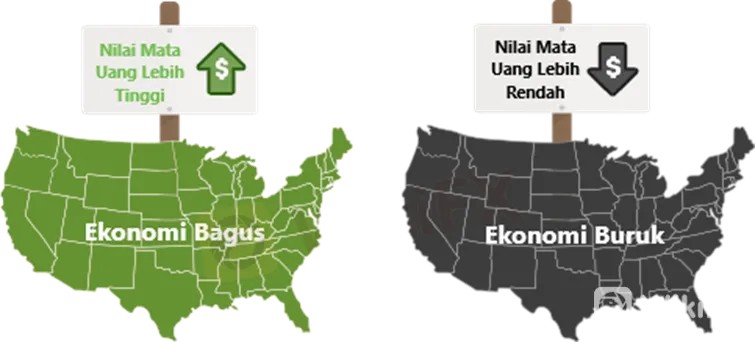 Semakin baik bentuk ekonomi suatu negara, semakin banyak bisnis dan investor asing akan berinvestasi di negara itu. Hal ini mengakibatkan kebutuhan untuk membeli mata uang negara tersebut untuk mendapatkan aset.