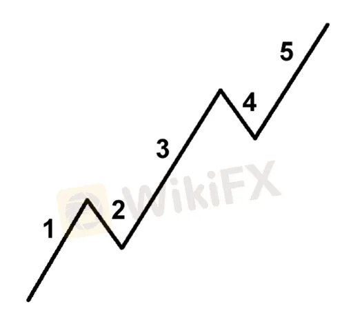 Dalam pola ini, Gelombang 1, 3, 5 adalah motif, artinya mereka mengikuti tren secara keseluruhan, sedangkan Gelombang 2 dan 4 bersifat korektif.