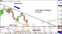 Kita dapat melihat dari garis tren turun bahwa USD/CHF telah berada dalam tren turun.