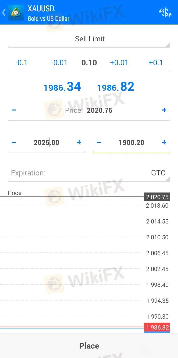 5. Setelah Anda memilih jenis pesanan, masukkan price/ harga di mana Anda ingin memasuki pasar.