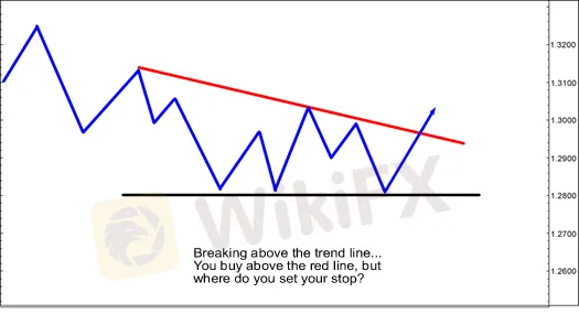 Dalam hal ini, paling masuk akal untuk mengatur stop Anda di bawah garis tren dan area support.