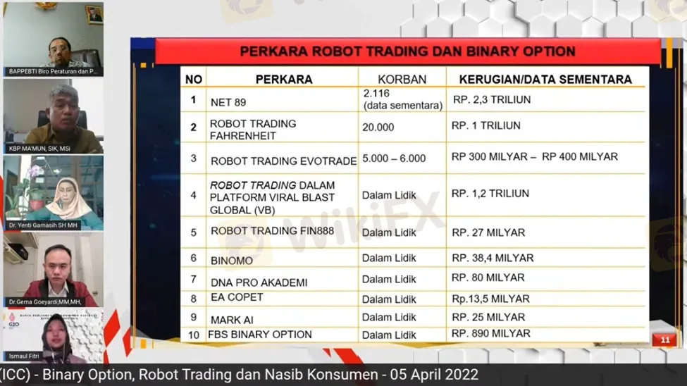 Dalam diskusi publik secara daring tersebut, terlihat dengan jelas nilai kerugian perkara robot trading dan binary option, dimana berdasarkan data sementara telah mencapai triliunan rupiah.