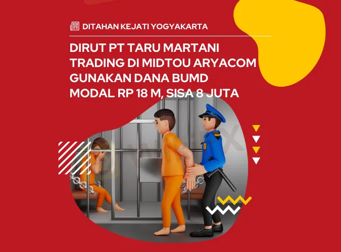 Ikhtisar:Penahanan dilakukan Kejati terhadap NAA selaku Dirut BUMD Taru Martani sebagai tersangka yang merugikan negara sebesar belasan miliar rupiah. Ini lantaran trading forex-nya melalui akun di PT Midtou Aryacom Futures yang menggunakan dana perusahaan secara ilegal