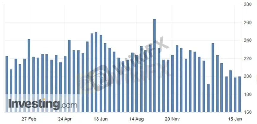 (Grafik 1: Klaim pengangguran awal tetap di bawah 200 ribu orang; Sumber: Investing.com)