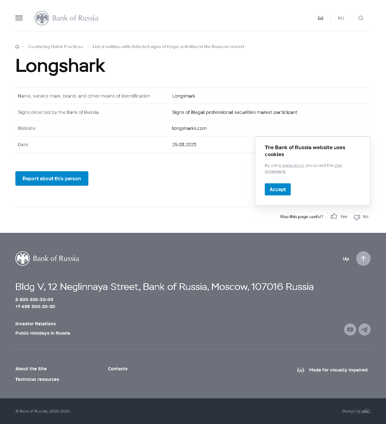 Daftar entitas dengan tanda-tanda aktivitas ilegal yang terdeteksi di pasar keuangan Longshark.